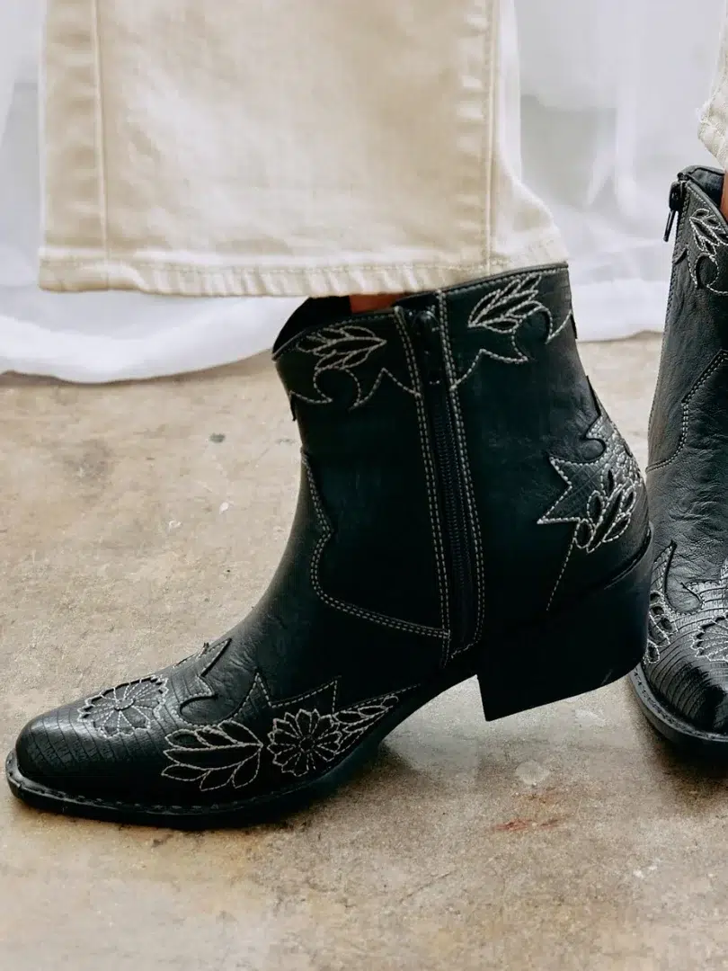 Sustainable cowgirl boots are made with quality craftsmanship and the most ethical materials, including deadstock fabrics, ethical and Leather Working Group-certified leather, and sustainable vegan alternatives. We’re always looking out for handmade boots made by artisans and with fair trade and ethical labor certifications. Additionally, we look for brands that give back, employ recycling initiatives, and have B Corp status.