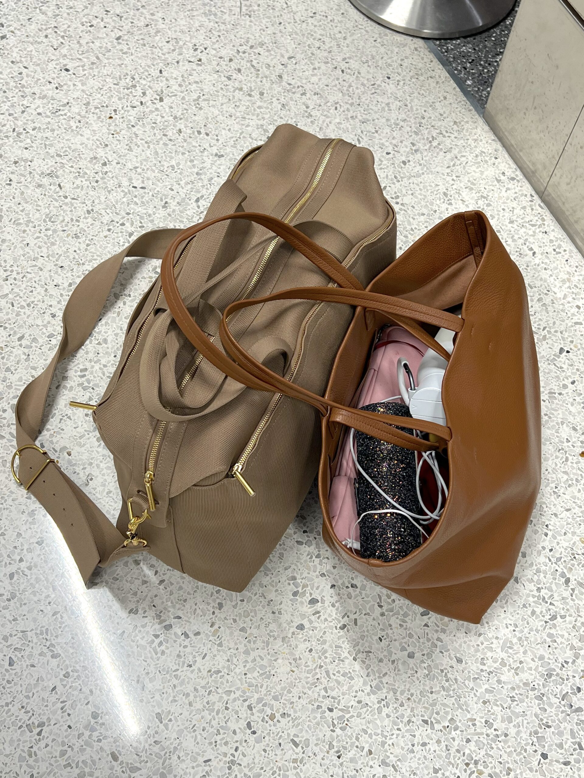 “Between [my Roam] carry-on’s multicompartment compression and hanging board and the tote’s phone pocket, I was impressed by how many compartments each piece had, and knew utilizing these would be the biggest test for me. I’m a highly sensitive person and easily overstimulated, which means traveling at all requires peak thoughtfulness and strategy. Staying organized while in transit helps me remain calm and is helpful on a typical day — staying organized while traveling with kids is a lifesaver!”