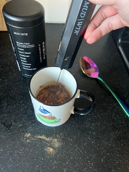 • MUDWTR is more gentle on my stomach than coffee, and even though the flavor isn’t a direct substitute for coffee, I enjoy the hot cocoa/chai flavor when I add a tablespoon of maple syrup.
