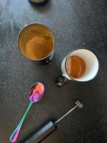 This is a pretty easy beverage to make, and I appreciate that it doesn’t have long brew times or require milk to be tasty—simply put a tablespoon of mud into a standard mug of hot water and stir. If you opt for the starter kit, the brand sends a USB-charged frother that takes some trial and error (and extra kitchen towels for when mud explosions happen). I recommend adding a quarter cup of hot water to the powder and whisking vigorously before topping off with more water.