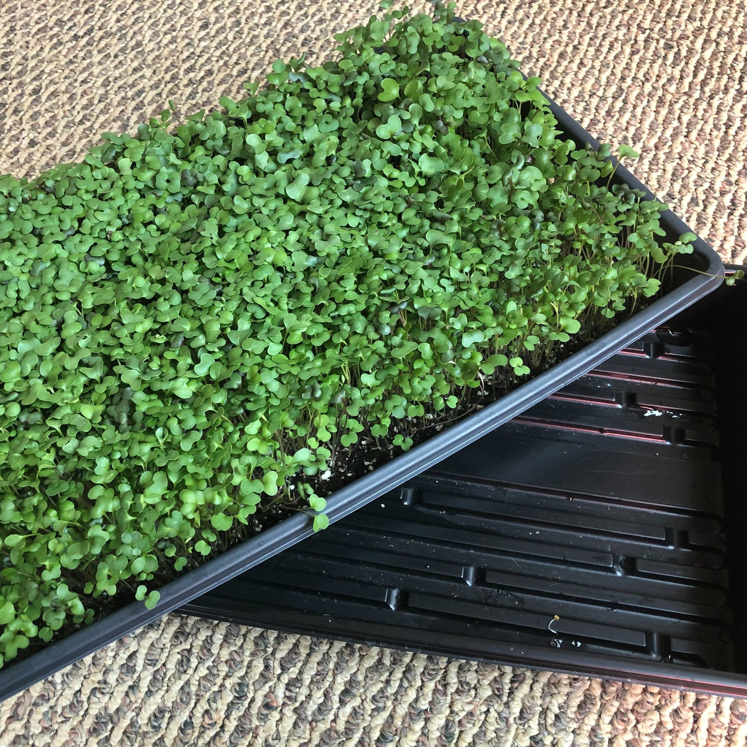 If you’re feeding a family of four microgreens regularly, you’ll eventually want two to three trays that are 10”x20” each week, but start small!
