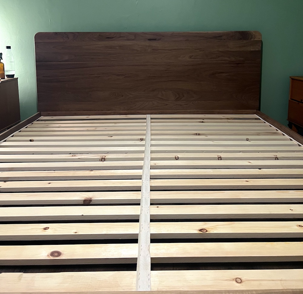 I set the frame up entirely by myself the next day, carrying the pieces in small batches back to the bedroom. 😅 While moving the parts was strenuous, the assembly was so easy (and Avocado’s current patented design is easier than ever before). I didn’t need any tools, not even a hex key, and the pieces slid together with a satisfying swoosh. The hardest part, truly, was how heavy everything was, but I take that as a great sign of high-quality thanks to this frame being made from beautiful solid FSC-certified sustainable hardwoods.