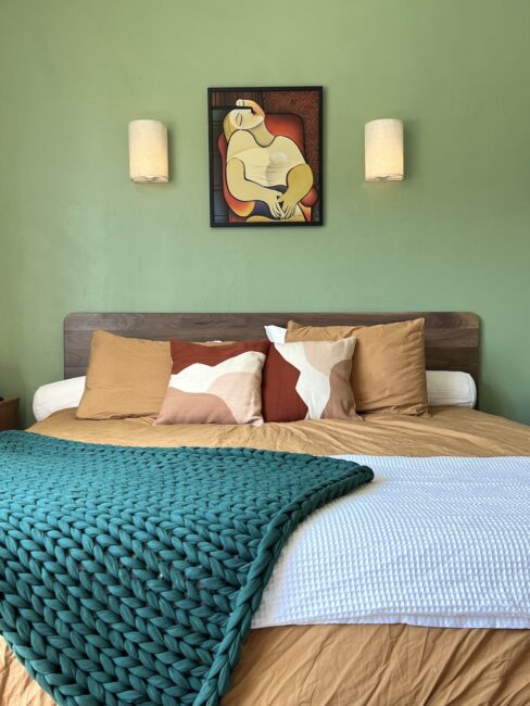 The first time I laid down on the king-sized bed was blissful — the top of the mattress features a thick and cozy wool layer (from a certified organic wool farm), and the whole mattress is wrapped in a GOTS Certified Organic Cotton cover that, frankly, I want to wear as a coat. We didn’t have king-size sheets the first night, so while I covered the bed with a flat sheet as best as I could, I couldn’t help but sneak my toes out onto the cotton cover of the mattress. It’s just such a pleasant texture. The cotton and wool combination also makes it very cool to sleep on — I haven’t had as many of my occasional intense night sweats while sleeping on my Avocado mattress.