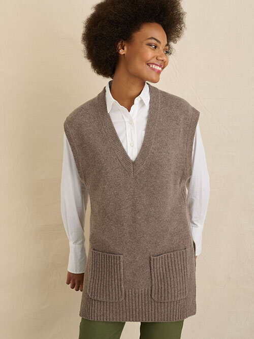 Anyone can find the sweater vest of their dreams at Olive Clothing. With an extensive knitwear collection including nearly 50 vest options for all genders, you can find button vests, romantic stitched wool, and pocketed styles. Designed in the rolling hills of Gloucestershire—yes, the ones you’re probably imagining with lots of greenery and sheep—you’ll see exactly why we love these uniquely UK pieces.