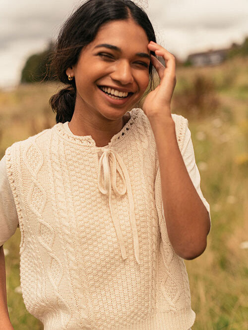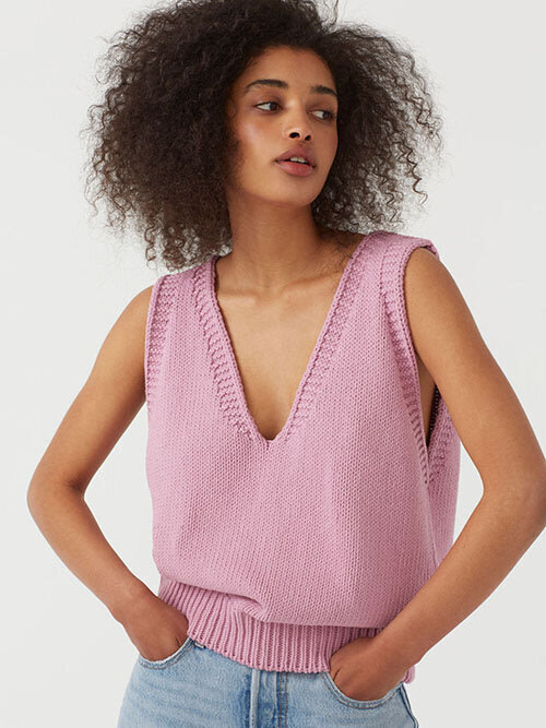 Born and bred in LA, Reformation is as chic as it is conscious. Its sweater vests (and adjacent sleeveless sweaters) are made with sustainable materials like Tencel, linen, organic cotton, and recycled cashmere. Every piece is ethically made, whether in China or the US, thanks to Ref’s emphasis on fair labor and wages. We especially love the collared and oversized options here!