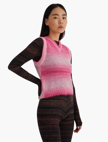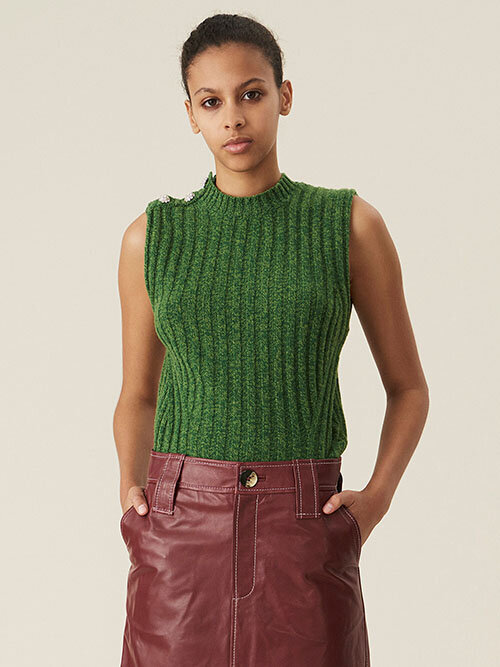 GANNI has long been a leader in up-and-coming fashion—including with Y2K-inspired vests. While many options here are made with less-than-sustainable fabrics, some are part of its “Responsible” collection using recycled wool and cotton. The team has also made a sizable commitment to sustainability. Pick up a recycled wool vest as your next investment piece.