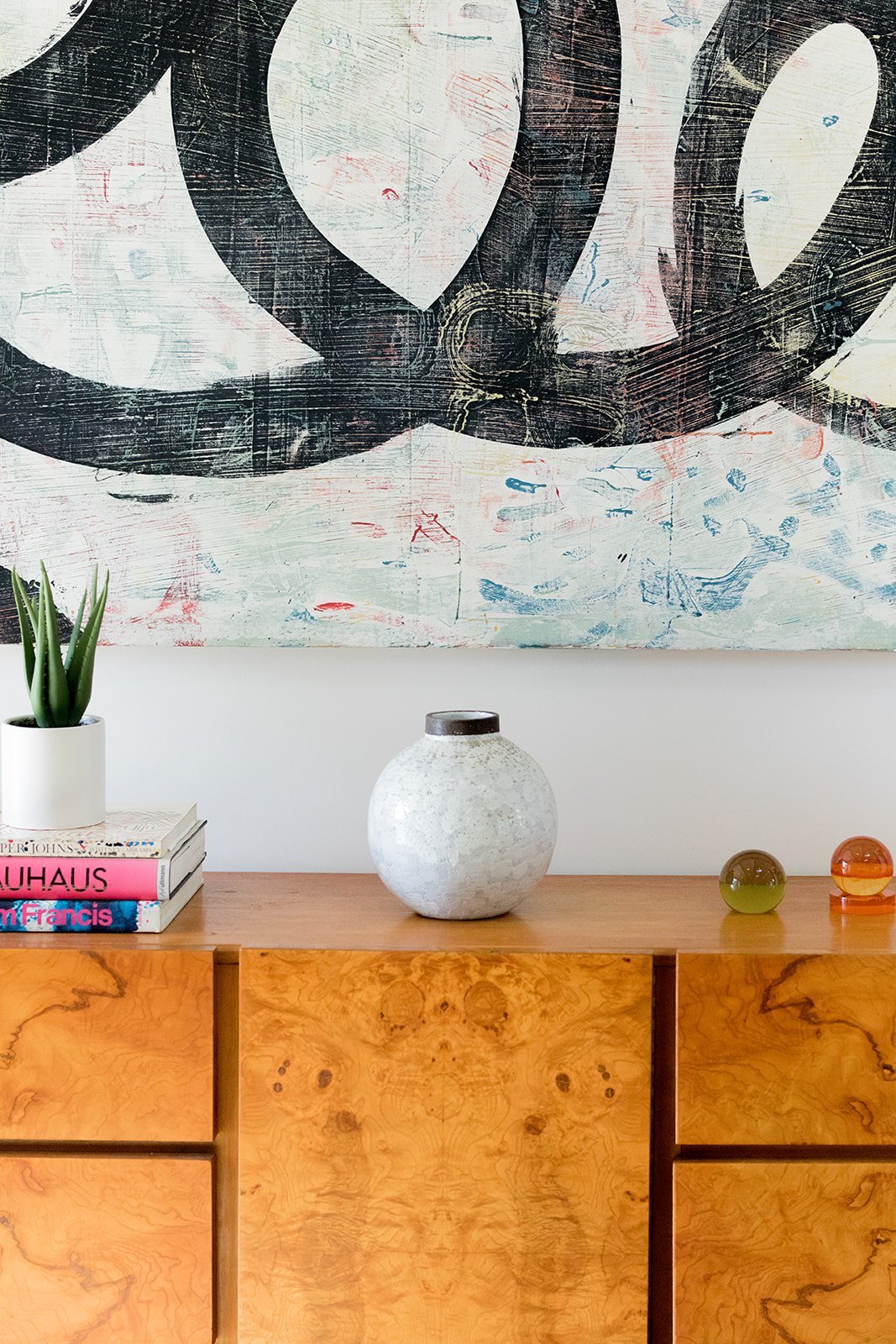 For the best flow, stick within a certain decade. Most pieces in our home are from the ‘60s and ‘70s, with a few pops of art deco decor. This way, the lines and curves of furniture match and better complement one another, as opposed to mixing, say, a luxurious 1920s chest with a sleek, modern coffee table.